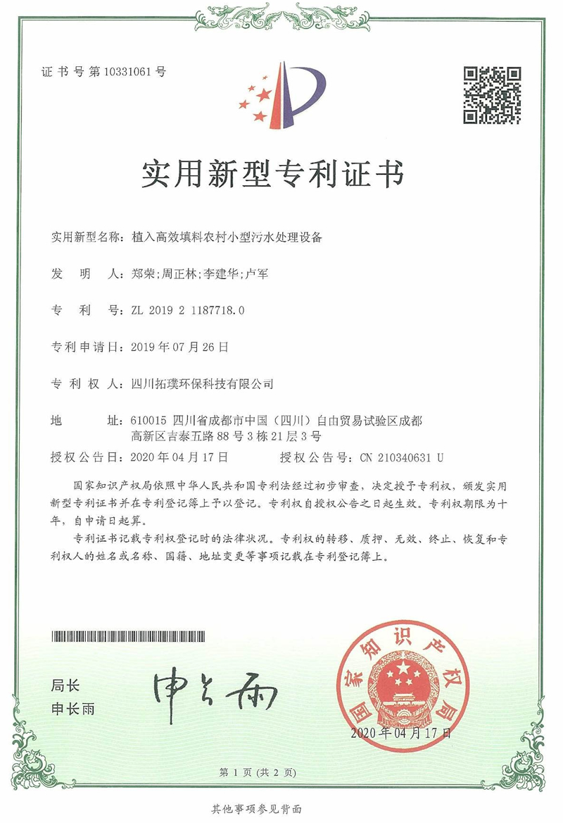 四川省環(huán)境污染防治工程等級確認證書